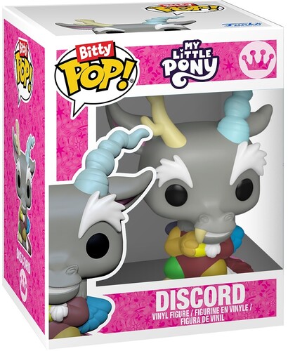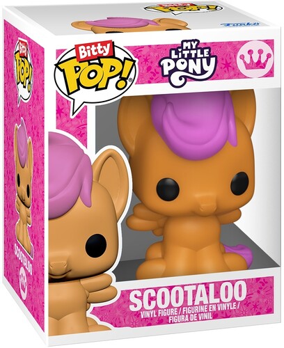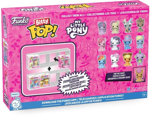 The world of POP! is getting bigger—and smaller—with Bitty POP! collectibles! Expand your My Little Pony collection with this 4-pack featuring Bitty POP! Twilight Sparkle, Bitty POP! Fluttershy, Bitty POP! Discord, and Bitty POP! Dr. Hooves. There’s a 1 in 6 chance you may find the chase of Bitty POP! Scootaloo. Bitty POP! collectibles are packaged in hard acrylic cases with detachable bottom lids. The detachable bottom lids double as acrylic bases, to which the Bitty POP! figures are adhered. Sort and arrange your Bitty POP! collectibles with the included display case! Acrylic display cases are stackable and hold four Bitty POP! figures each. Vinyl figures are approximately 0.9 in (2.3 cm) tall. Four figures per single package purchase.