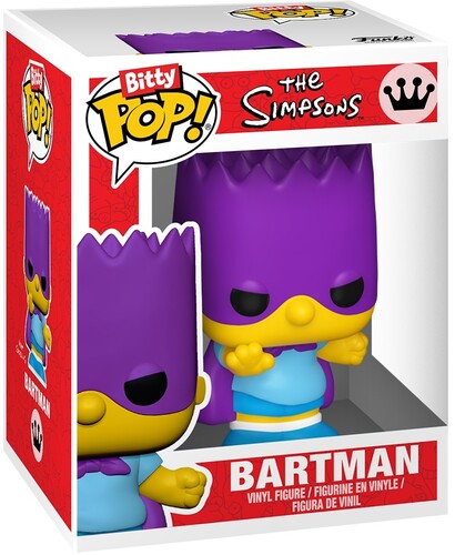 The world of POP! is getting bigger—and smaller—with Bitty POP! collectibles! Expand your The Simpsons™ collection with this 4-pack featuring Bitty POP! Bart Simpson™, Bitty POP! Mr. Burns™, Bitty POP! Krusty the Clown™, and a chase Bitty POP! collectible. The possible chase Bitty POP! collectibles are Rare (1/3) Chief Wiggum™, Rare (1/3) Lard Lad™, Hyper Rare (1/6) Fallout Boy™, and Hyper Rare (1/6) Bartman™.