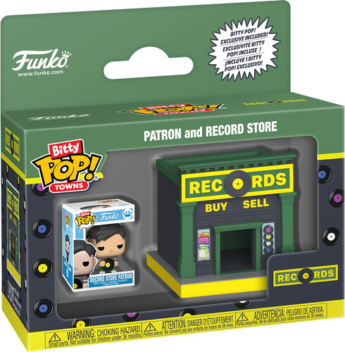 The world of POP! is getting bigger—and smaller—with Bitty POP! collectibles! Expand your Bitty City collection with Bitty POP! Town Record Store Patron and Record Store! Bitty POP! figure is packaged in a hard acrylic display case with a detachable bottom lid. The detachable bottom lid doubles as an acrylic base, to which the Bitty POP! figure is adhered. Remove Bitty POP! Record Store Patron from his display case so he can step inside the Bitty POP! Town Record Store! Vinyl figures are approximately 0.9 and 2 in (2.3 and 5.1 cm) tall.