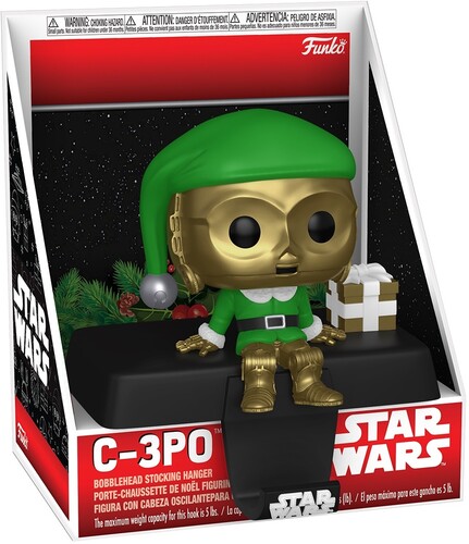 Display your stockings in style with POP! Stocking Hanger C-3PO™! Dressed in a festive elf costume with a wrapped gift at his side, this droid is ready to add some holiday flair and functionality to your décor. Give him the best seat in the house when you add POP! Stocking Hanger C-3PO™ to your Star Wars™ collection. Approximate dimensions of vinyl collectible: 5” H x 4.75” W x 3.7” D.