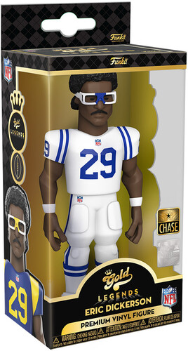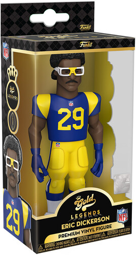 Score a touchdown for your National Football League collection with the new GOLD Eric Dickerson premium vinyl figure. This 5-inch tall collectible of Eric Dickerson has him dressed in his blue and yellow Los Angeles Rams uniform.