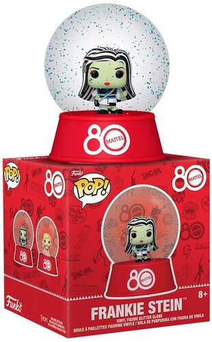Shake up your collection with the Mattel® 80th Anniversary Bitty POP! Snow Globes. Each snow globe features one of your favorite retro toys in Bitty POP! form! There’s Frankie Stein™, Peaches ‘n Cream Barbie™, Polly Pocket™, and View-Master™. Collect them all! Snow globes are approximately 2.2-inches tall. One collectible per single package purchase.