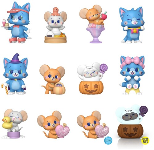 "Enjoy hilarious antics and adventures with the Tom & Jerry™ Gokko Mystery Minis! Each figure features one of your favorite characters as an adorable collectible! There’s Tom with Bell (1/6), Spa Jerry (1/6), Spa Nibbles (1/6), Halloween Tom (1/6), Halloween Jerry (1/12), Halloween Nibbles (1/12), Roller Server Tom (1/24), Jerry with Treat (1/24), Nibbles in Basket (1/36), Spa Tom (1/36), Spa Jerry – Glitter (1/72), and Halloween Nibbles – Glow-in-the-Dark (1/72). Collect them all! Vinyl figure is a maximum of 3 in (7.6 cm) tall. Height varies depending on figure. One collectible per single package purchase.