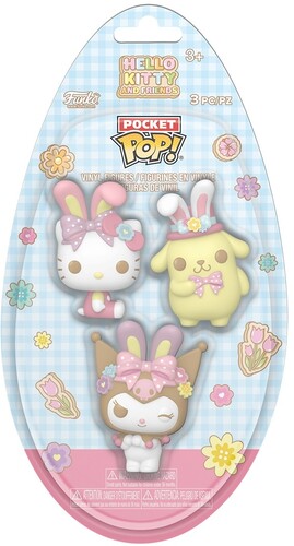 Hop into your favorite springtime celebrations with Pocket POP! Hello Kitty™, Pocket POP! Kuromi™, and Pocket POP! Pompompurin™! Fill your holiday basket to the brim when you seek out this festive 3-pack of collectibles in charming egg-themed packaging for your Hello Kitty™ and Friends collection. Vinyl collectibles are approximately 1.5 in (3.8 cm) tall.