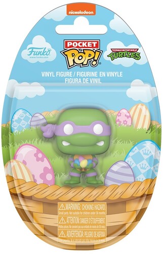 Whether you’re hunting for eggs or shelling out justice, Pocket POP! Donatello has got your back! Celebrate your favorite springtime holidays with this half-shell hero in his festive pastel ensemble. In charming egg-shaped packaging, this Teenage Mutant Ninja Turtle collectible is sure to make a radical addition to your basket. Vinyl figure is approximately 1.5-inches tall. Warning: Choking Hazard. Collectibles are small. Not for children under the age of 3 years old.