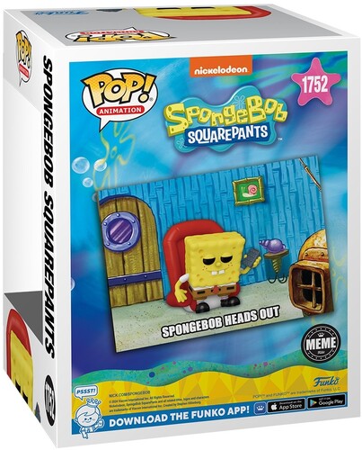 Pop! SpongeBob SquarePants is about to head out! Pull up a chair and commemorate a pop culture sensation when you welcome this Premium Pop! SpongeBob SquarePants to your Pop! Memes collection! Reunite him with all his Bikini Bottom friends in your SpongeBob SquarePants set. Vinyl figure is approximately 4.55-inches tall.