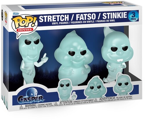 Summon frightful fun to your collection with POP! Stretch, POP! Fatso, and POP! Stinkie! Celebrate the 30th Anniversary of Casper by inviting this ghostly 3-pack to haunt your POP! Movies collection. Vinyl figures are approximately 4.5 in (11.4 cm) tall.