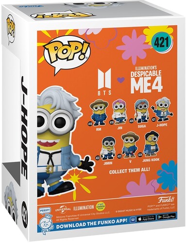 Score front row seats with Pop! J-Hope as a Minion! This member of K-pop sensation BTS is here to take the stage in your Pop! Rocks collection! Reunite him with the rest of the group in your music set as he rocks this new look inspired by Despicable Me 4. Vinyl figure is approximately 4.15-inches tall.
