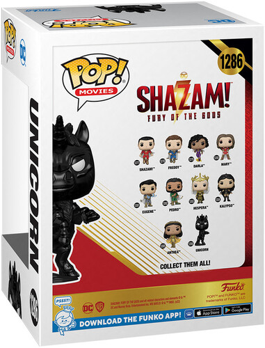 This Shazam! Fury of the Gods Unicorn Funko Pop! Vinyl Figure measures approximately 3 3/4-inches tall. Comes packaged in a window display box.