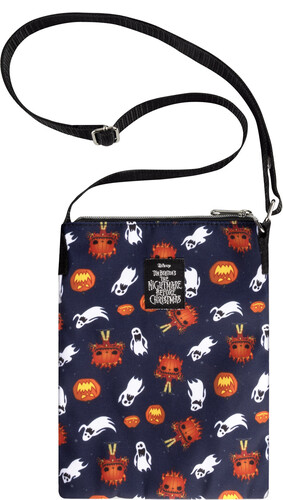 Prepare for a hauntingly delightful stroll through the graveyard with the Funko Pop! The Nightmare Before Christmas Passport Bag! This bag features an allover print of Pop! Pumpkin Jack with jack-o-lanterns and ghosts against a black background. This awesome accessory has plenty of room for holding all your spooky trick-or-treating essentials! The Funko Pop! The Nightmare Before Christmas Passport Bag is made of nylon canvas. Bag has adjustable shoulder straps, sturdy metal hardware, and features printed details. This bag is an officially licensed Disney product. Bag dimensions: 7"" W x 9"" H (Please note: width is measured across the bottom of the bag.) Patterns will vary with all-over print styles.