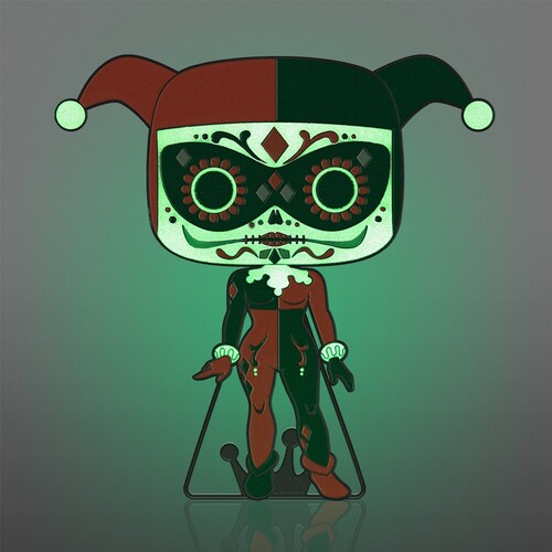 Decorate for your holiday traditions with a fun pop culture twist. It's the slightly spooky, colorful Dia De Los DC Pop! Pin collection. Start your Dia De Los DC set with the glow-in-the-dark Pop! Pin Harley Quinn. Bring home Dia De Los DC Pop! Pin Harley Quinn to bring a pop of color and light into your display. Enamel pin features shiny black-colored hardware and a built-in stand. Pin is approximately 4-inches tall.