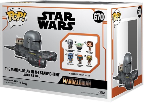 Celebrate the most stellar fandom of them all with Pop! The Mandalorian™ and his chaotic co-pilot, Pop! R5-D4™! Take off with them on their next adventure with this Super Deluxe Pop! Ride featuring Pop! The Mandalorian™ on N-1 Starfighter™ (with R5-D4™)! Give this duo a safe place to land in your Star Wars™ collection. Vinyl bobblehead is approximately 4.55-inches tall.