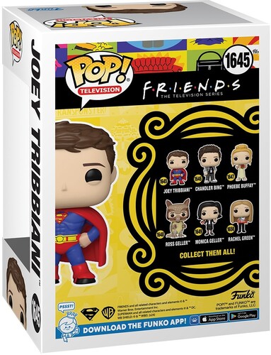 Pop! Joey Tribbiani has arrived to save the day in his Superman™ costume! Reunite him with his buddies for a night of festive fun in your Friends collection! Vinyl figure is approximately 4-inches tall.