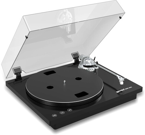 The belt-drive motor offers 33 and 45 RPM speed options. Touch sensitive buttons allow you to press play and select speeds with ease. A statically balanced tonearm features a hydraulic lift and an anti-skate mechanism. A Gemini HDCN-15 headshell/cartridge with Audio Technica elliptical stylus is included.