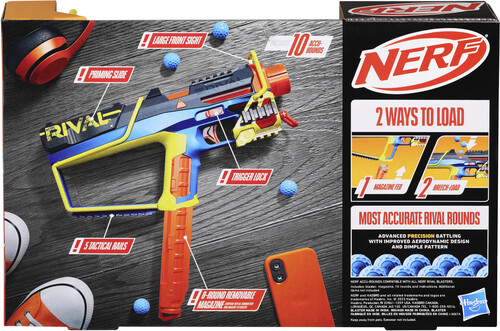 - NERF RIVAL MIRAGE XXIV-800 BLASTER: Challenge the competition with this Nerf Rival blaster that features 2 ways to load the magazine, for reload flexibility during Nerf Rival games