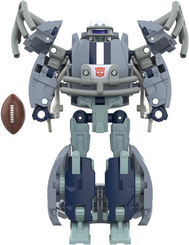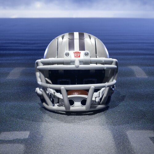 The 5.5-inch (14 cm) figure converts from robot action figure to football helmet mode in 23 steps. With intricate poseability and accessories like a mini football the figure can hold and a mini helmet that the robot figure can wear, this unique collaborative action figure makes an awesome addition to any Transformers or NFL collection.