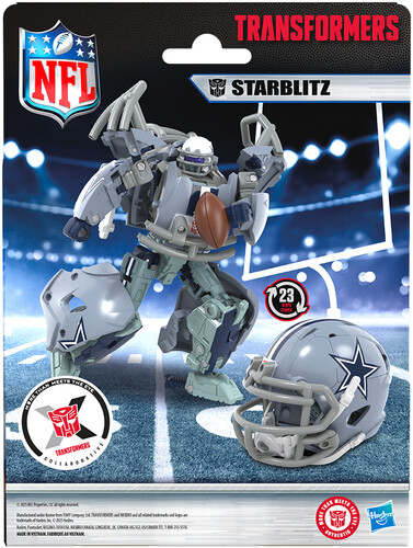 - OFFICIALLY LICENSED NFL TRANSFORMERS BOT: This Transformers figure, Starblitz, represents the Dallas Cowboys and features team colors and themed accessories