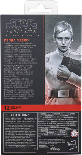 This Star Wars action figure is detailed to look like Dedra Meero from Star Wars: Andor. With exquisite features and decoration, The Black Series embodies the quality and realism that Star Wars devotees love.
