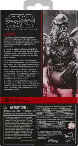 This Star Wars Hasbro action figure is detailed to look like Watto from Star Wars: Attack of the Clones. With exquisite features and decoration, The Black Series embodies the quality and realism that Star Wars devotees love.