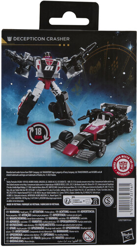This 5.5-inch Decepticon Crasher action figure converts between robot and sports car modes in 18 steps. Includes 2 blaster accessories that attach in both modes. The Decepticon Crasher figure is inspired by the character from the Transformers universe and features articulated head, arms, and legs for awesome action poses.