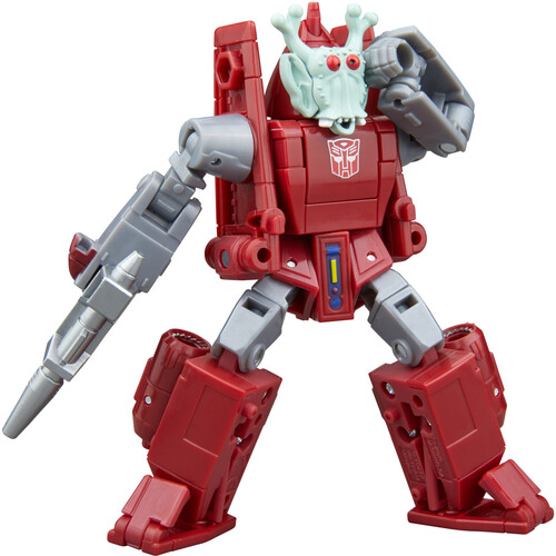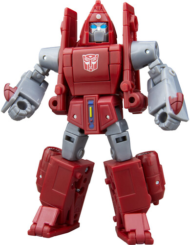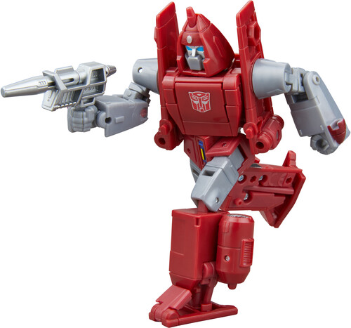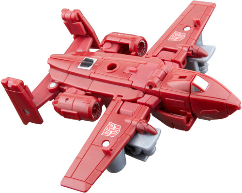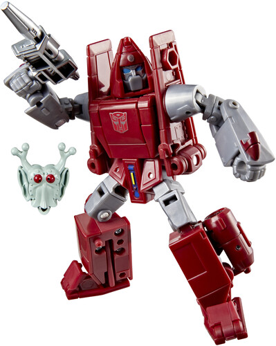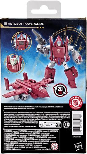 The 4.5-inch (11 cm) Deluxe Class figure converts from robot to jet mode in 20 steps. With intricate poseability and attachable blaster and alien mask accessories, the Autobot Powerglide action figure makes an awesome addition to any collection.