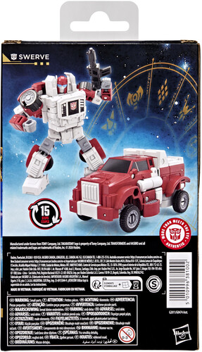 The 4.5-inch (11 cm) Deluxe Class figure converts from robot to truck mode in 15 steps. With intricate poseability and attachable blaster accessory, the Swerve action figure makes an awesome addition to any collection.