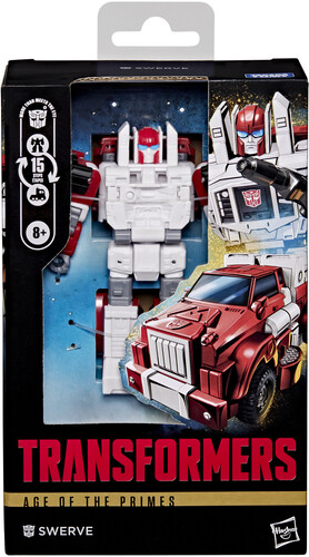 - This Transformers Age of the Primes Swerve figure features deco and details inspired by the Transformers universe.