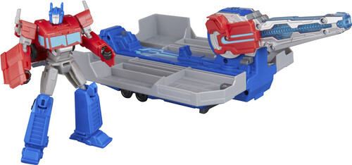 There are so many ways to play with this awesome Transformers toy. Put the 5-inch (12.5 cm) Optimus Prime figure into toy truck mode, then attach the playset in trailer mode and roll out! Then, convert the Optimus Prime action figure into robot mode and flip the blaster on the playset to see it open up into a battle station. The figure can sit in the battle station and man the light-up blaster or the projectile launcher. Kids can load a projectile into the launcher and launch it with the press of a button!