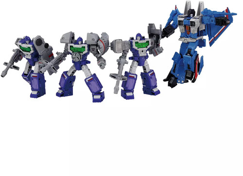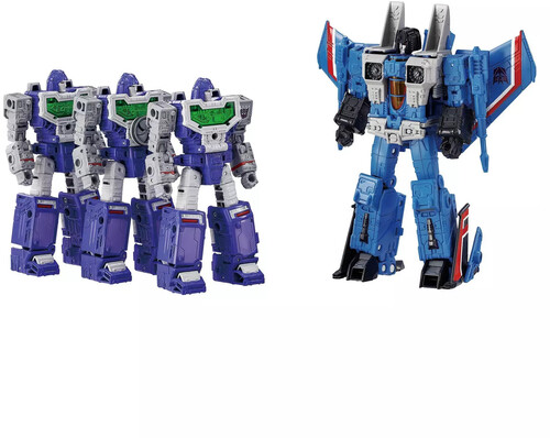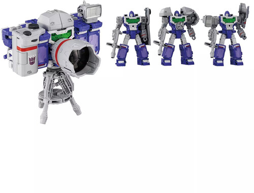 This set comes with converting Thundercracker figure, 3 Reflector figures that combine to convert into camera mode, a Kremzeek mini figure, and accessories to recreate favorite scenes. These collectible Transformers figures for adults feature authentic Takara Tomy design and deco.