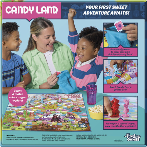Who will they meet along the way—and which player will reach the castle first? This edition includes story-enriching updates, such as 2 ways to play (classic and now collaborative), an enlarged and reillustrated board, a drawstring pouch of 50 cardstock candy tokens, 5 sculpted character movers, and a story to read aloud.