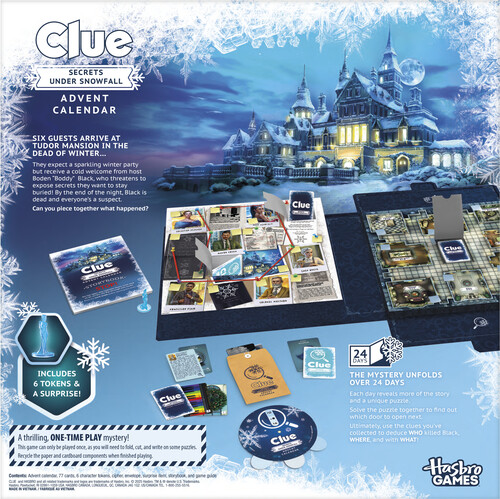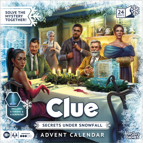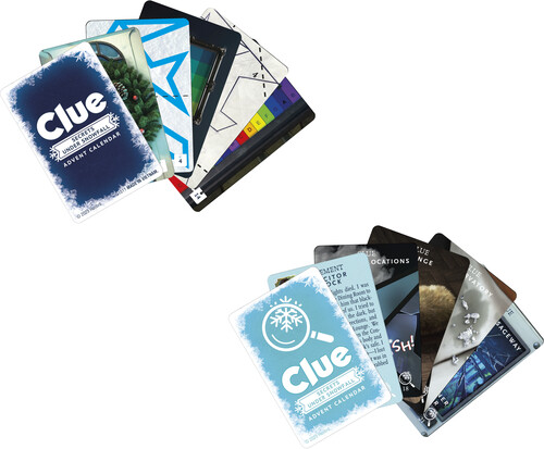 - 24 DAYS OF MYSTERY SOLVING: Look forward to 24 days of puzzle-solving excitement with the Clue Advent Calendar: Secrets Under Snowfall! Families can collect evidence and crack the case in this immersive mystery game