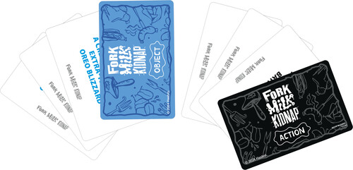 IT’S EASY AS FORK: Everybody secretly pairs up 3 action and 3 object cards to choose who (or what) they’d fork, milk, kidnap, and more. Take turns revealing all 3 of your pairings. Then explain what the fork you were thinking