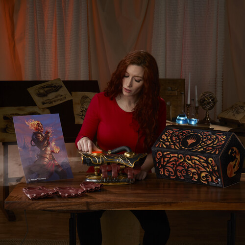 Start conversations and be the envy of everyone on your video call. This one-of-a-kind package design was created to evoke the world and setting of Magic: The Gathering. Imagine pulling a filigreed trunk from under your bed and cracking it open to reveal the gauntlet within.