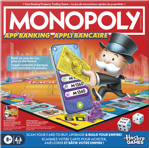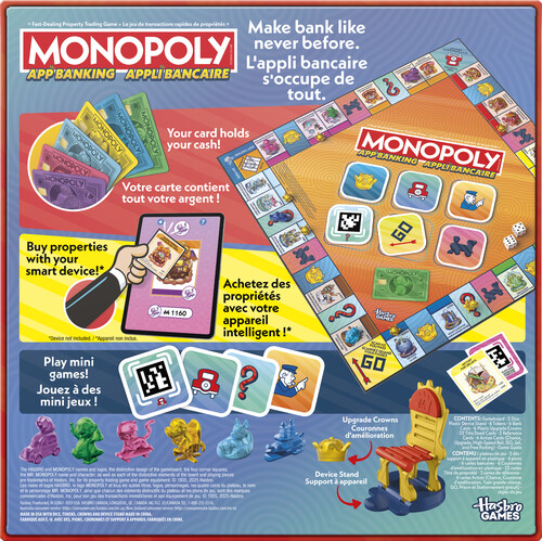 - FREE MONOPOLY APP: Requires the Monopoly App Banking app to play. Scan the QR code in the instructions to download onto a smartphone or tablet. (Device not included. Free to download—data rates and in-app purchase may apply)