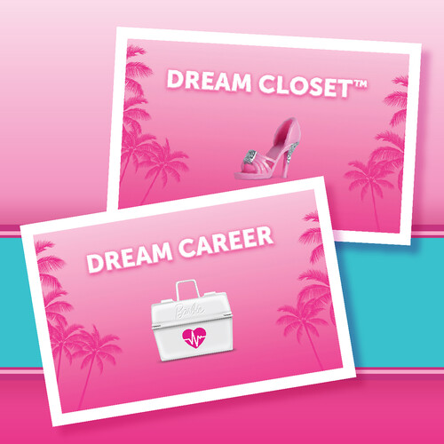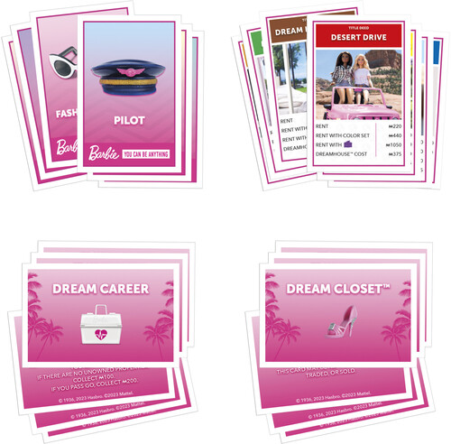 DREAM CLOSET AND DREAM CAREER CARDS: "Your mic goes out during your sold-out 'Dream Pink' concert! Go to Jail." These cards add twists with some of the most popular Barbie fashion and career moments
