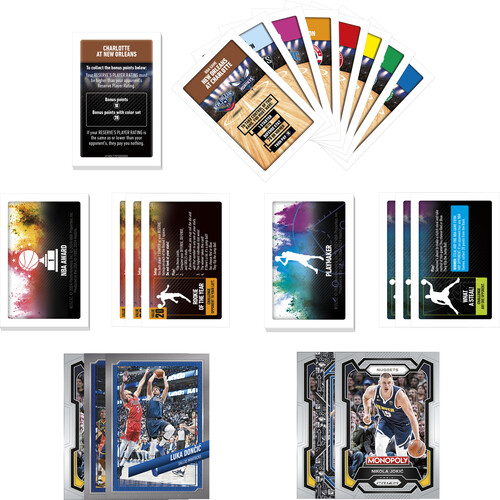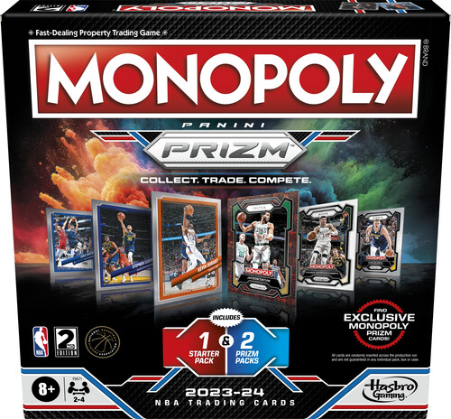WANT TO ADD MORE NBA PLAYERS?: Look for Monopoly Prizm: 2023-24 NBA Trading Cards booster boxes for use with the Monopoly Prizm: NBA Edition games! (Each sold separately. Subject to availability.)