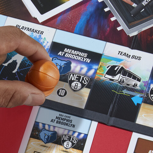 PROPERTIES ARE NBA GAMES: Move around the board, trying to take control of as many NBA Games as possible. Earn points when opponents land on them—and when beating others in NBA player matchups. Get the most points to win