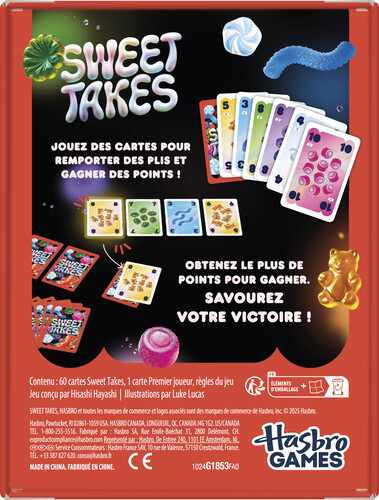 Includes 60 Sweet Takes cards, 1 turn tracker card, and game rules.