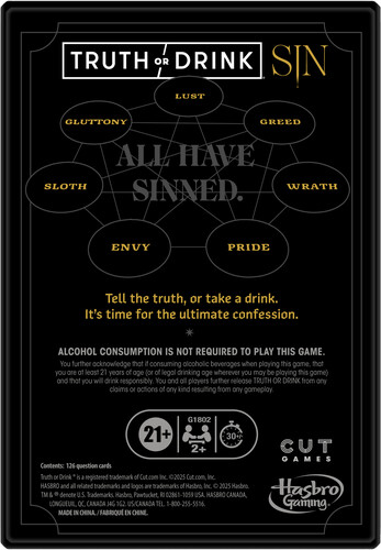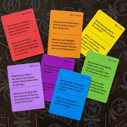- SINFULLY ENTERTAINING ADULT PARTY GAME: This Truth or Drink: Sin Edition party card game for adults only includes over 250 fresh questions inspired by the 7 deadly sins, designed to bring out the ultimate confessions