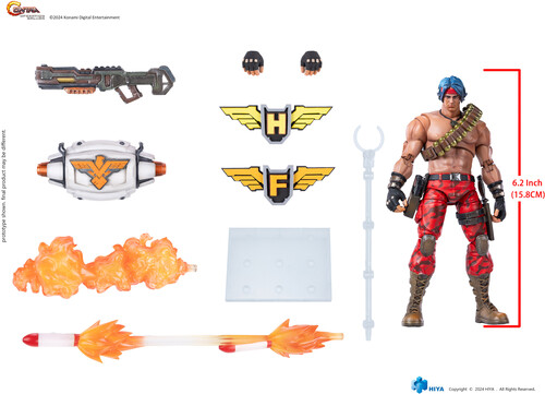 The EXQUISITE BASIC series Lance Bean 1/12 scale action figure stands 15.8cm tall, restoring the classic look of shirtless and red camo pants in the game "Contra: Operation Galuga".