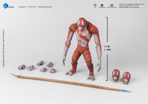 This brand new Scar King action figure stands 15CM tall, meticulously crafted based on the original CG data from Godzilla x Kong: The New Empire, faithfully reproducing every aspect of Scar King's appearance from the film. Featuring multi-layered paint applications that highlight his iconic orange-red fur and battle scars on the chest and abdomen exude intimidation. His unique white tribal markings, sharp eyes, and the slender physique are all finely recreated, embodies an overwhelming domineering presence.