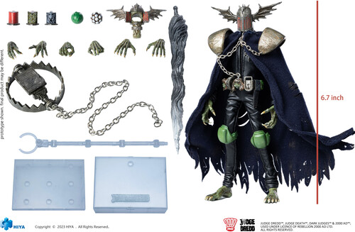 Fear not, he may be able to show you your greatest death-inducing terrors, but he’s only six inches tall – the 1:12 scale Judge Fear is the latest 2000 AD action figure coming from HIYA Toys!
