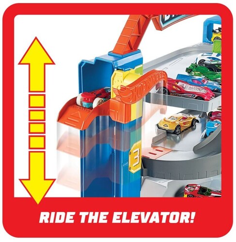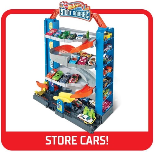 The Hot Wheels™ City Stunt Garage is the only garage that let's kids cars jump from one floor to the other!
