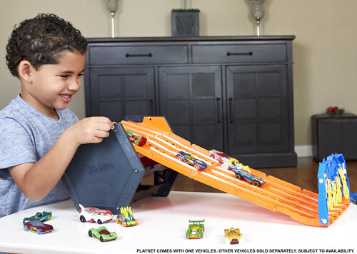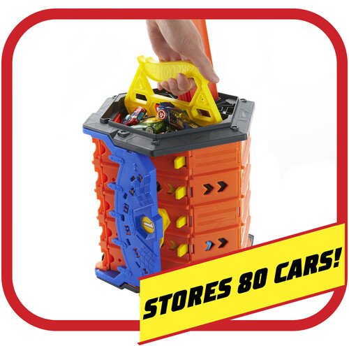 The Hot Wheels® Roll Out Raceway™ Track Set is the ultimate in racing and storage in one cool and exciting package!