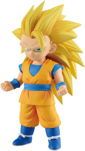 Standing at approximately 4.3" tall, Super Saiyan 2 / Super Saiyan 3 Son Goku (mini) is seen in their popular pose.
