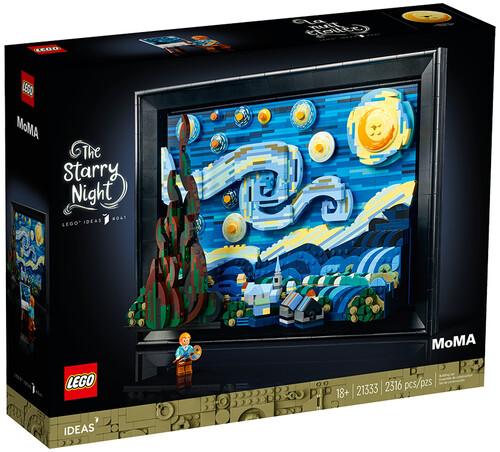 - 3D LEGO® brick art model (21333) of a Vincent van Gogh masterpiece – Recreate the timeless beauty of Van Gogh’s 1889 painting, The Starry Night, with this LEGO Ideas build-and-display set for adults