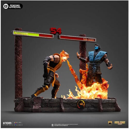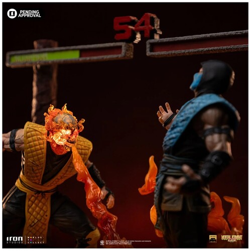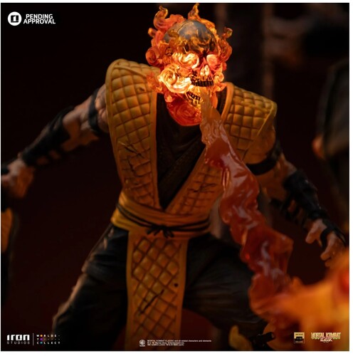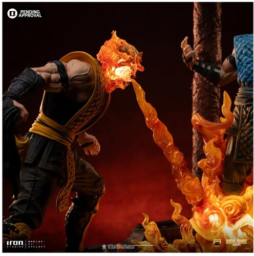 Exploring the Scorpion Fatality statue: In the depths of Netherrealm, the hellish underworld of Mortal Kombat, two legendary ninja warriors face off in their ultimate battle. Driven by vengeance, the spectral spirit of the Japanese Shirai Ryu ninja clan reveals his true form, exposing his fiery skeletal face and delivering his fatal move—unleashing an infernal breath upon his frozen opponent, who suffers agonizingly as he is burned alive after having fought against his oldest archenemy. Iron Studios presents the "Scorpion Fatality - Mortal Kombat - Deluxe Art Scale 1/10" statue, featuring two of the most iconic characters from the legendary fighting game in a diorama where all flames—from Scorpion's head to Sub-Zero's feet—light up with LED effects, capturing a duel that ends in a fatality for one of the opponents.