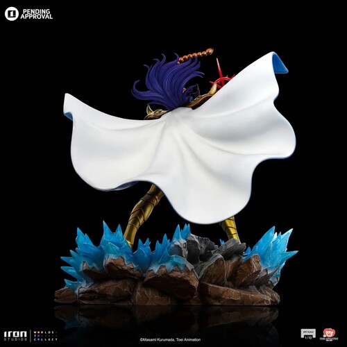Exploring the Scorpio Milo statue: With surgical precision in his strike, the warrior with long purplish-blue hair can pierce his opponent’s body anywhere he desires using the so-called “Scarlet Needle”. Like the arachnid he represents, he inflicts a small, imperceptible superficial wound, akin to the sting of a deadly venom, causing internal pain beyond the imagination of any living creature. Self-assured and proud, valuing honor and dignity, he never shows doubt or hesitation in battle. Wearing one of the 13 Gold Cloths of Athena’s army, along with a grand white cape with a bluish lining, he prepares once again to deliver his deadly attack. This is how we come to know the statue "Scorpio Milo - Saint Seiya - Art Scale 1/10", the first Gold Saint in the Saint Seiya collection by Iron Studios, standing on top of a rocky base from Athena's Sanctuary, his feet on ice, reminiscent of his battle against Cygnus Hyoga.
