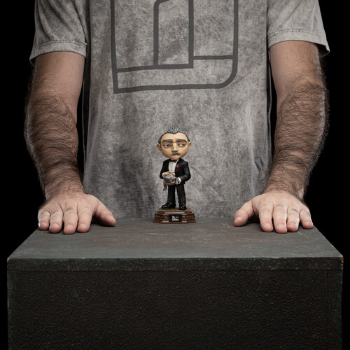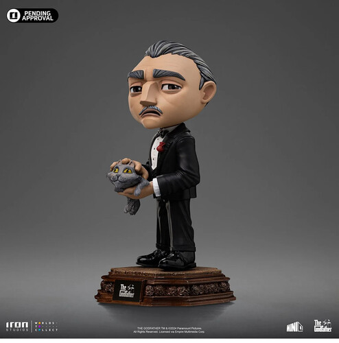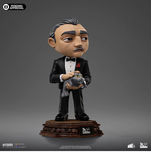 Admired, respected, and feared at times, the patriarchal leader of a Sicilian-American family presents himself impeccably at his daughter’s wedding, dressed in a tuxedo with a red rose on his lapel, holding and petting his cat while listening to requests for favors from allies in his office. Standing on a base that is reminiscent of the old noble wooden floor of his mansion, with carvings decorating its side and the logo of the iconic film trilogy that tells his story in the front, in the best Toy Art style, Iron Studios presents the statue “Don Corleone - The Godfather - MiniCo”, featuring the revered and iconic protagonist of the hit franchise The Godfather, known as a landmark of the gangster genre in the movies with influences on modern productions to this day.