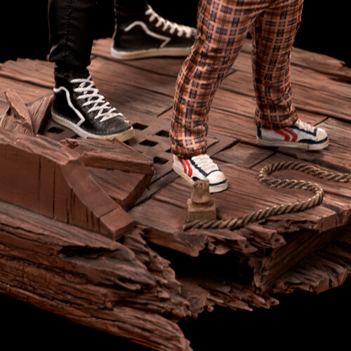 Crafted with premium materials like Polystone, resin, and PVC, this limited edition Sloth and Chunk collectible brings to life the iconic moment of camaraderie between the clumsy but clever Chunk and the kind-hearted giant Sloth. From their first bond over a shared chocolate bar to adventures through hidden caves, traps, and pirate treasures, this statue is a must-have for The Goonies fans, classic movie collectibles enthusiasts, and anyone looking to expand their Iron Studios collection.